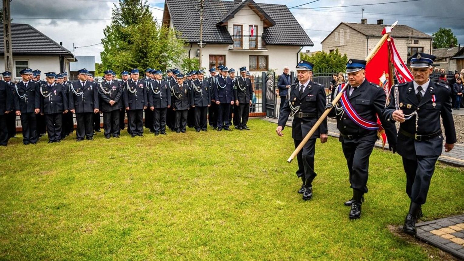 Niedzielne uroczystości rozpoczęły się przemarszem strażaków do kościoła, gdzie o godz. 10:30 odbyła się uroczysta Msza Święta poświęcona naszym dzielnym strażakom. Po Eucharystii, wszyscy goście i druhowie przeszli na plac OSP, gdzie miało miejsce oficjalne wywieszenie flagi państwowej i odśpiewanie hymnu Polski.