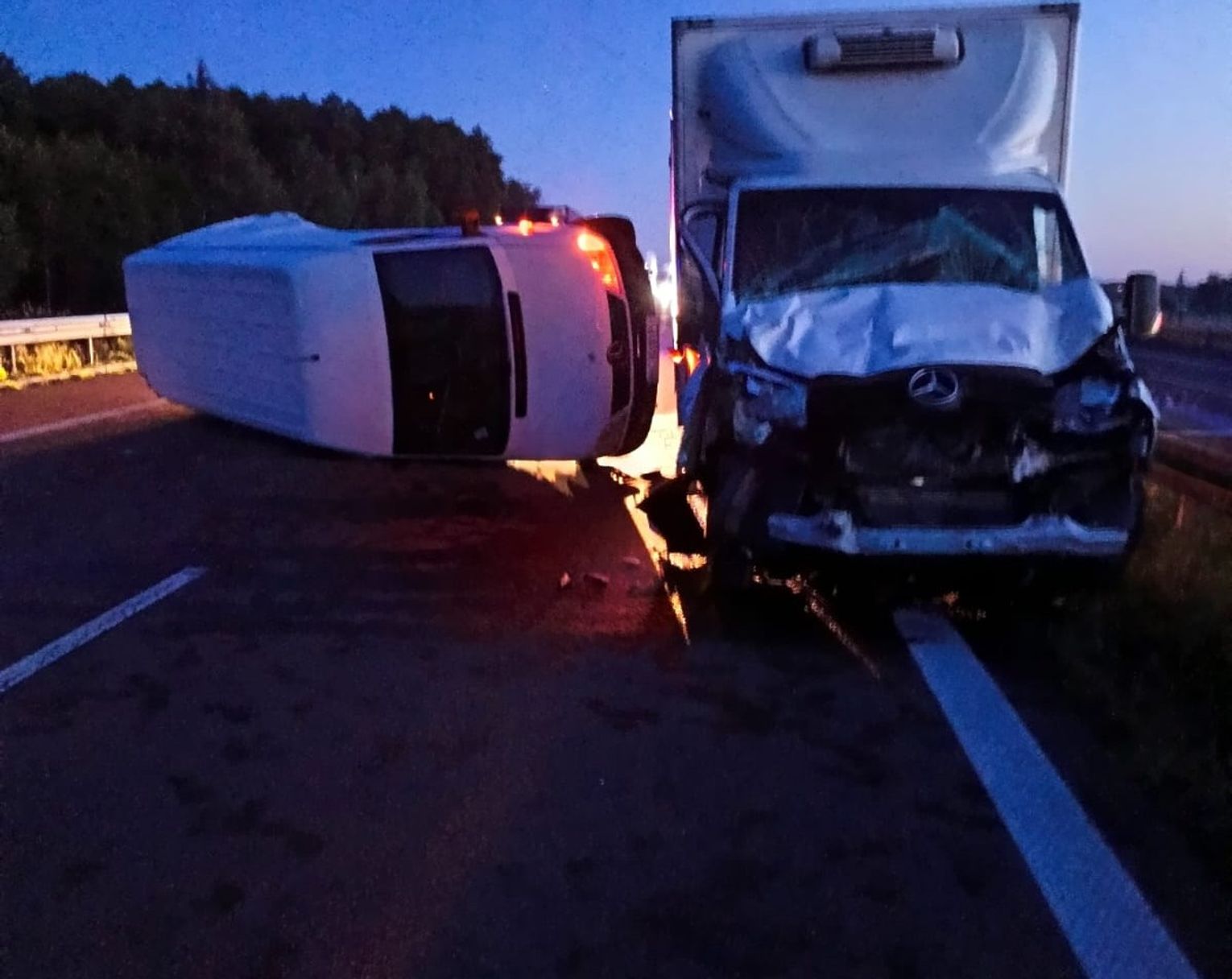 Ze wstępnych ustaleń policjantów, wykonujących czynności na miejscu zdarzenia wynika, że 36-letni kierowca mercedesa sprintera, mieszkaniec powiatu chodzieskiego, zasnął za kierownicą i uderzył w tył pojazdu tej samej marki, którym kierował obywatel Ukrainy. Poszkodowany został przewieziony do szpitala.
