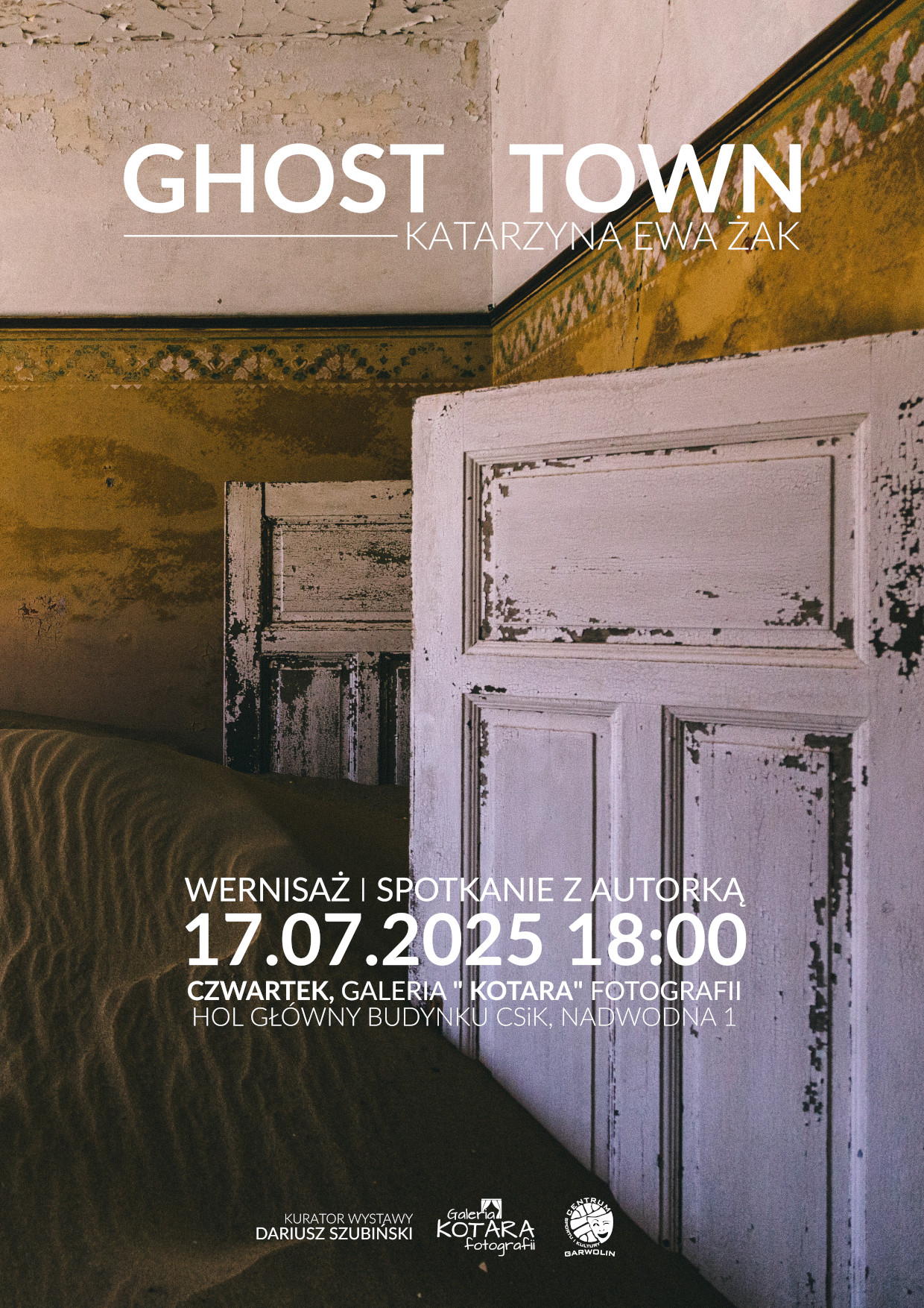 Seria „Ghost Town” to projekt fotograficzny zrealizowany w opuszczonym górniczym mieście Kolmanskop na terenie pustyni Namib w Namibii – miejscu, które przez dekady ulegało stopniowemu zawłaszczeniu przez naturę. Katarzyna Ewa Żak prowadzi widza przez niemal nierealne przestrzenie dawnego niemieckiego diamentowego miasteczka, które natura odzyskuje na własnych zasadach. Zamiast reportażowego zapisu, artystka proponuje kontemplację. Każdy kadr to osobna opowieść – o przemijaniu, o pustce, o ludzkich śladach pochłanianych przez czas i wiatr. Światło buduje tu atmosferę snu, a piasek staje się symboliczną zasłoną, przykrywającą wszystko, co było. Na fotografiach nie ma postaci – a jednak człowiek jest stale obecny. W pozostawionych przedmiotach, architekturze, kolorach zgasłych ścian.