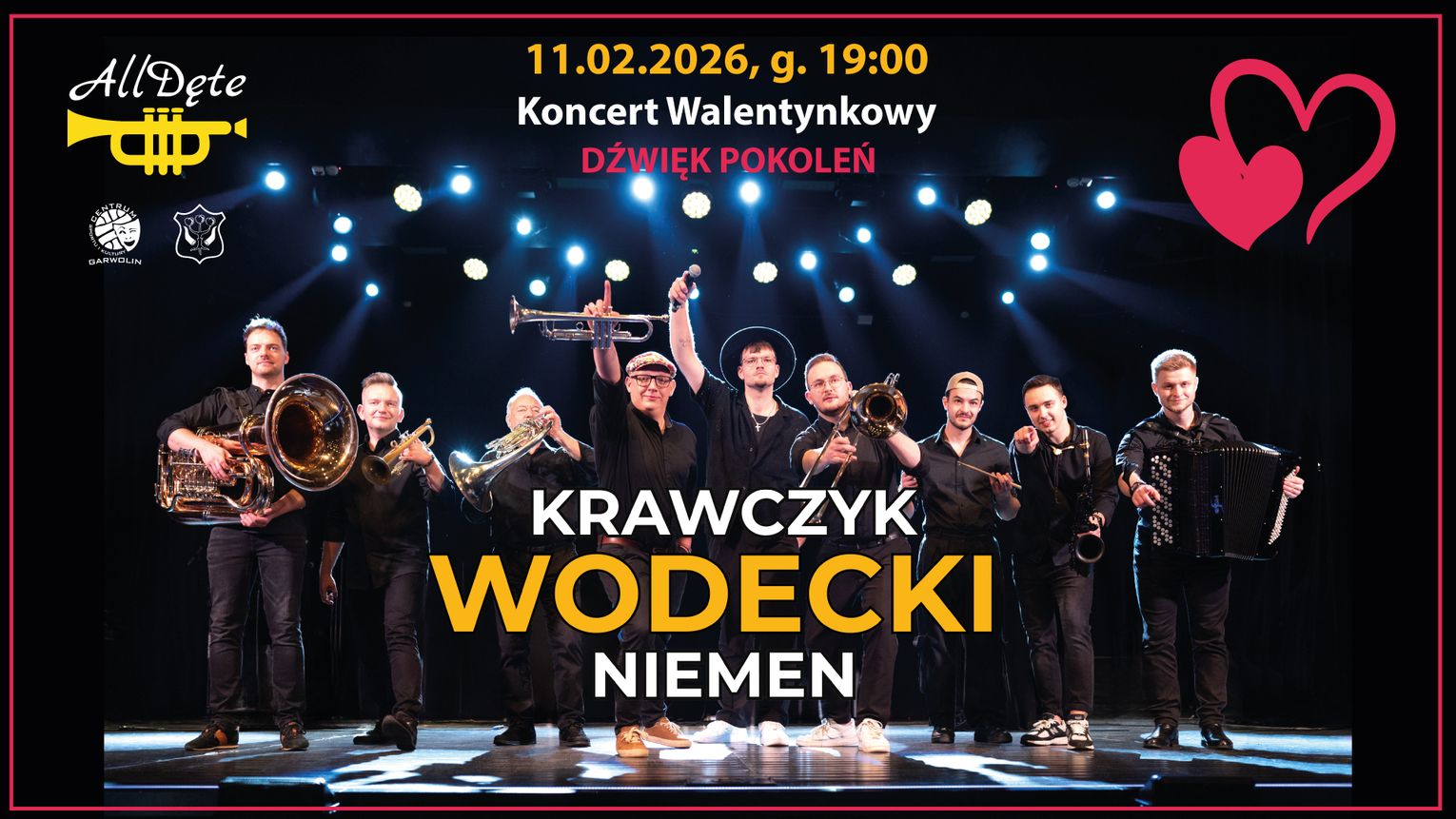AllDęte to wyjątkowy brass band, który od 2018 roku zachwyca publiczność zarówno w Polsce, jak i za granicą. To dziewięciu muzyków, którzy razem tworzą niesamowite brzmienie! Nowoczesne aranżacje klasyków polskiej muzyki rozrywkowej oraz autorskie kompozycje z pewnością zauroczą publiczność.