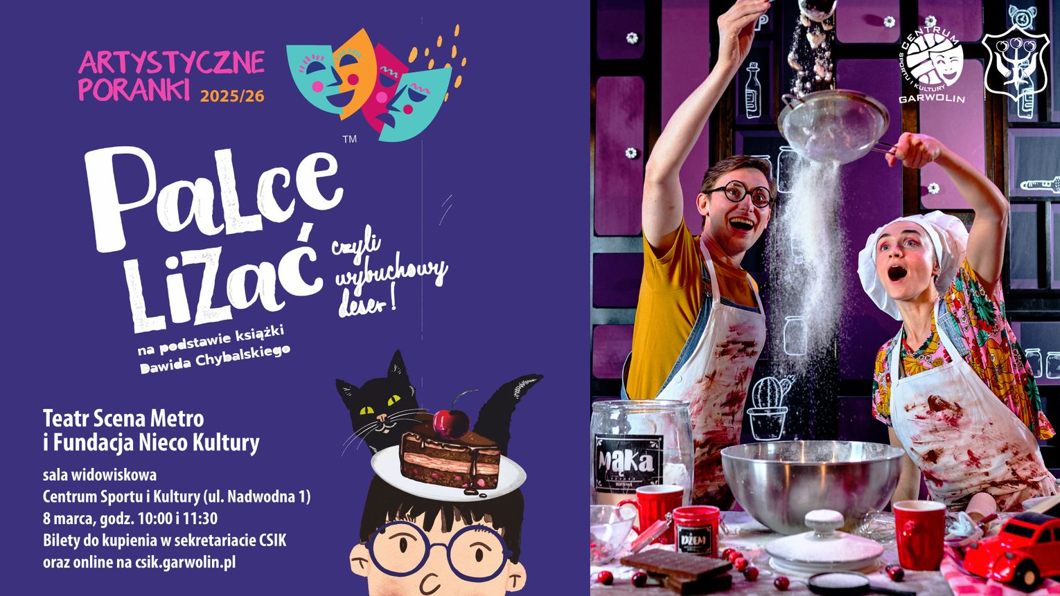 Spektakl oparty na książce Dawida Chybalskiego łączy humor, piosenki i dynamiczną akcję z ciepłą i mądrą opowieścią o prawdomówności i odwadze. Publiczność będzie mogła aktywnie włączyć się w wydarzenia na scenie, poznać tajniki pracy cukiernika i pomóc bohaterom w przygotowaniu tytułowego „wybuchowego deseru”. Na scenie będzie energicznie, muzycznie i bardzo wesoło, a dowcipne dialogi sprawią, że również dorośli znajdą tu coś dla siebie.