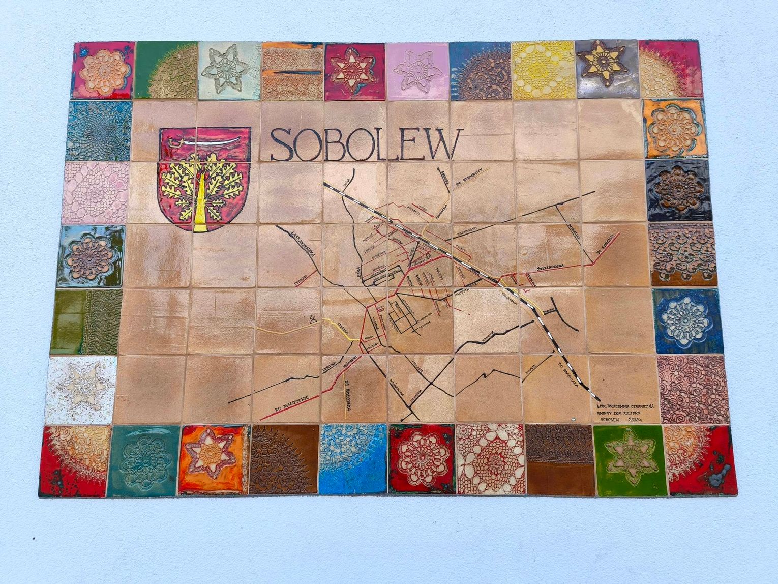 Proces tworzenia był wieloetapowy – od surowej gliny, przez formowanie i tłoczenie wzorów, aż po szkliwienie i wypał. Efektem jest kolorowa, bogato zdobiona mozaika, która nie tylko zdobi przestrzeń, ale także opowiada historię Sobolewa. Każdy element powstał dzięki zaangażowaniu uczestników pracowni ceramicznej działającej przy Gminnym Domu Kultury.