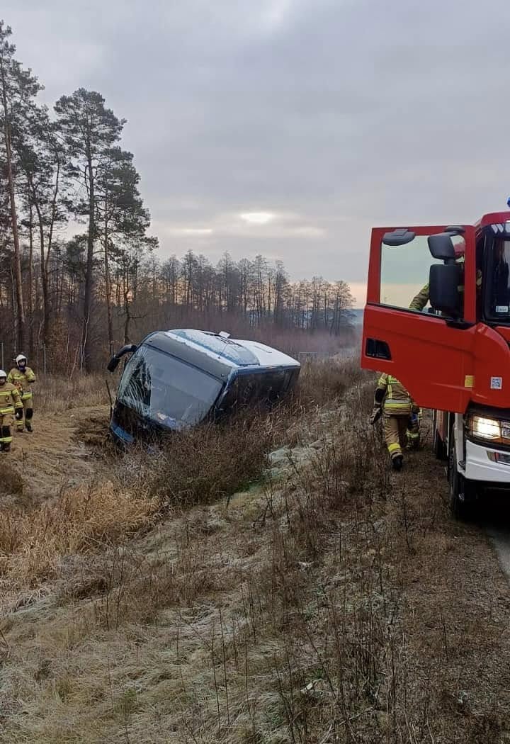 Dramatyczne chwile na S17: kierowca zasnął, autobus w rowie
