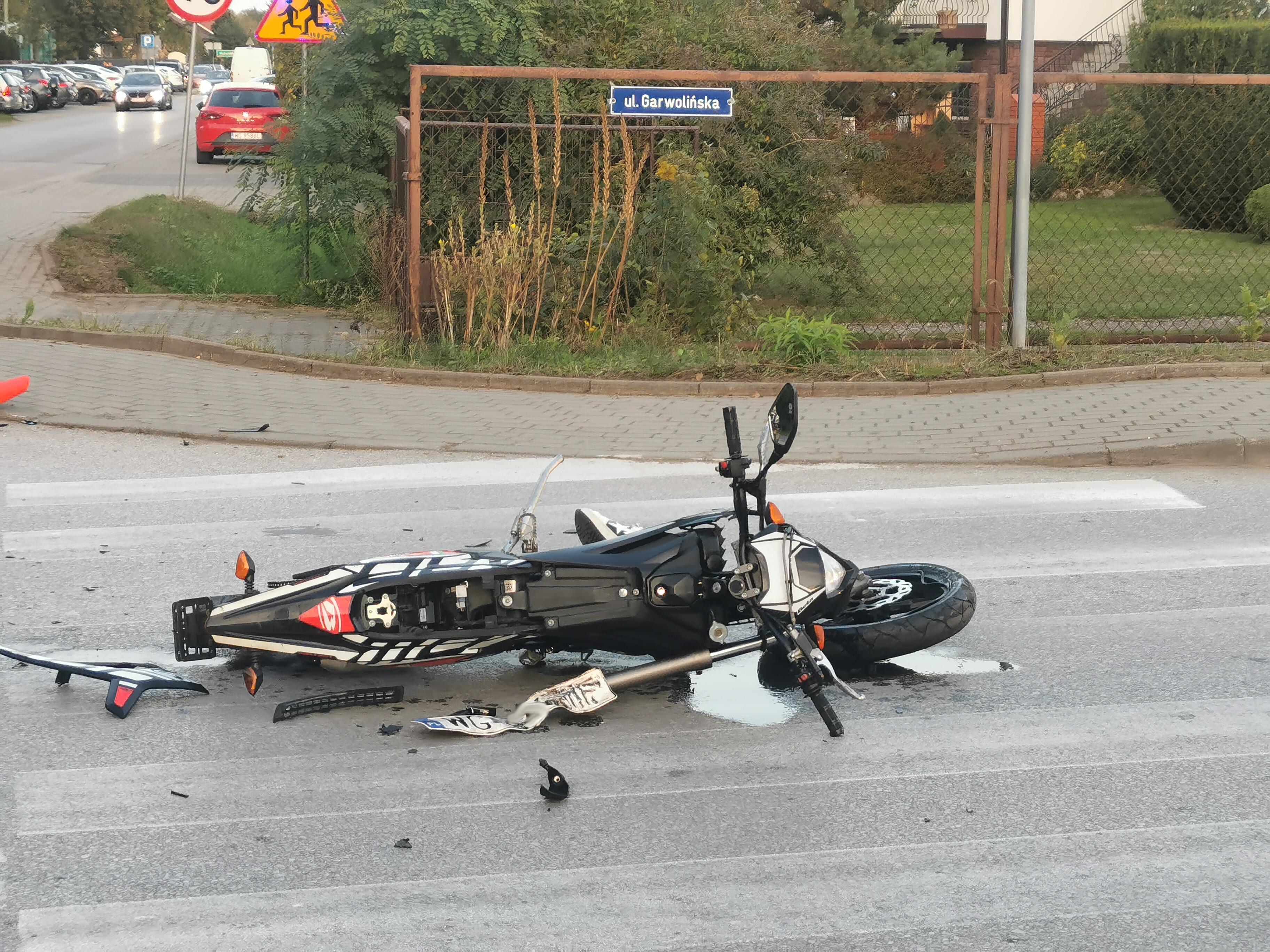 Zderzenie suva z motocyklem na skrzyżowaniu