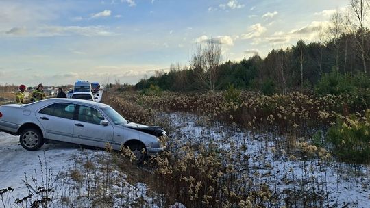 Poślizg przy S17. Mercedes zablokował drogę, doszło do koliz...