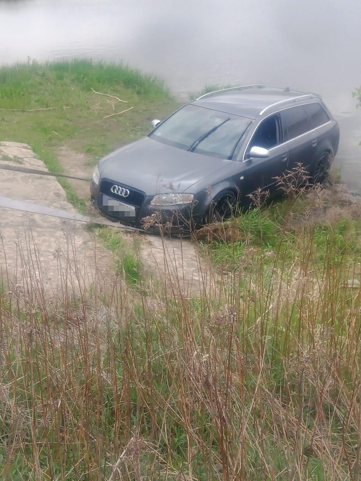 Nie zaciągnął ręcznego. Audi wpadło do Wisły
