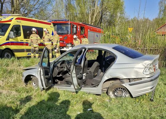 18-letni kierowca rozbił BMW. Auto dachowało na krajowej „76”