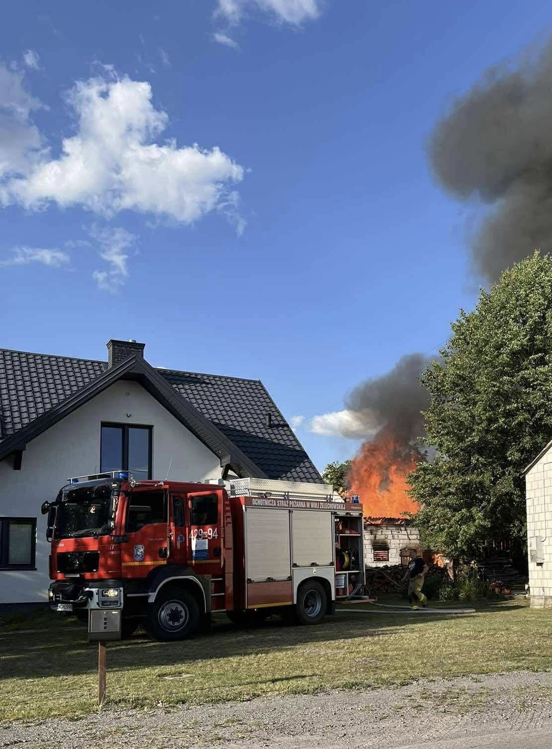 Duży pożar budynku gospodarczego w gm. Żelechów