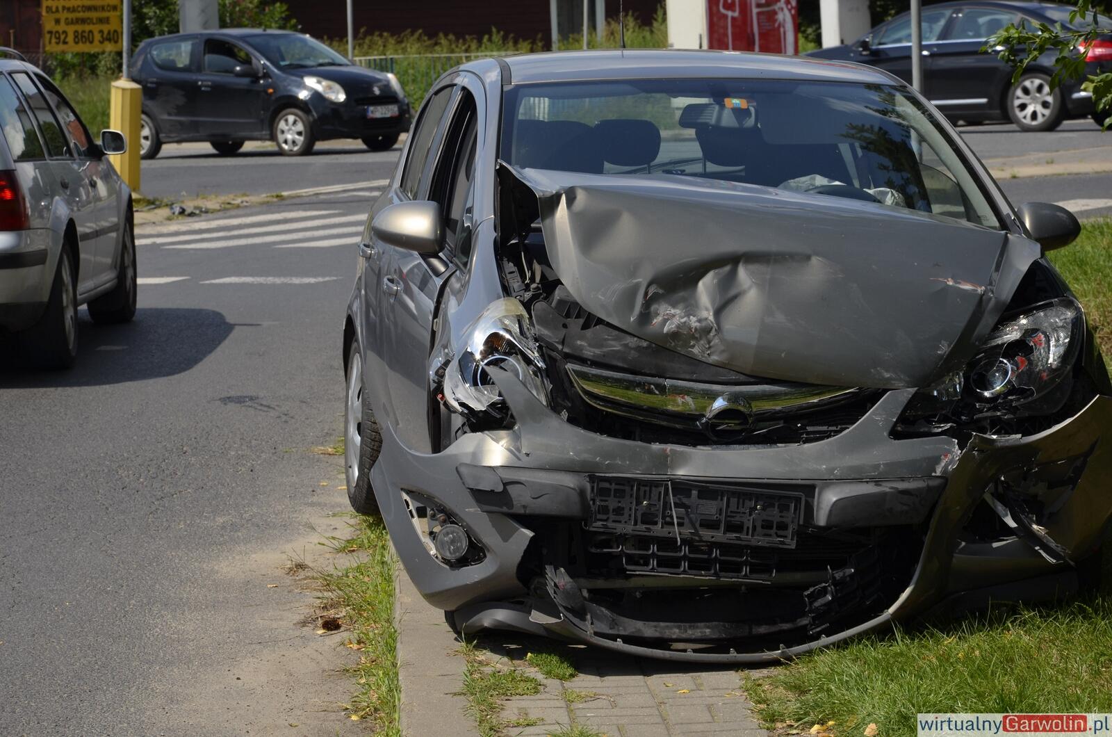 Po zderzeniu na skrzyżowaniu auto uderzyło w budynek