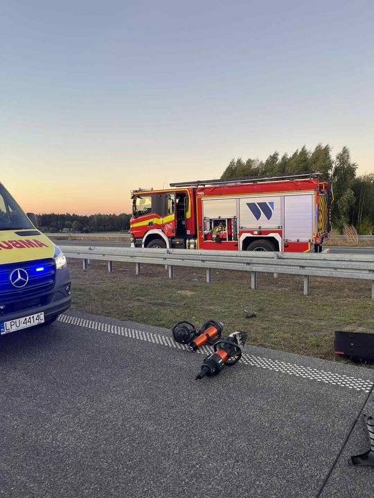 S17 zablokowana po zderzeniu Hondy z ciężarówką. Lądowało LPR