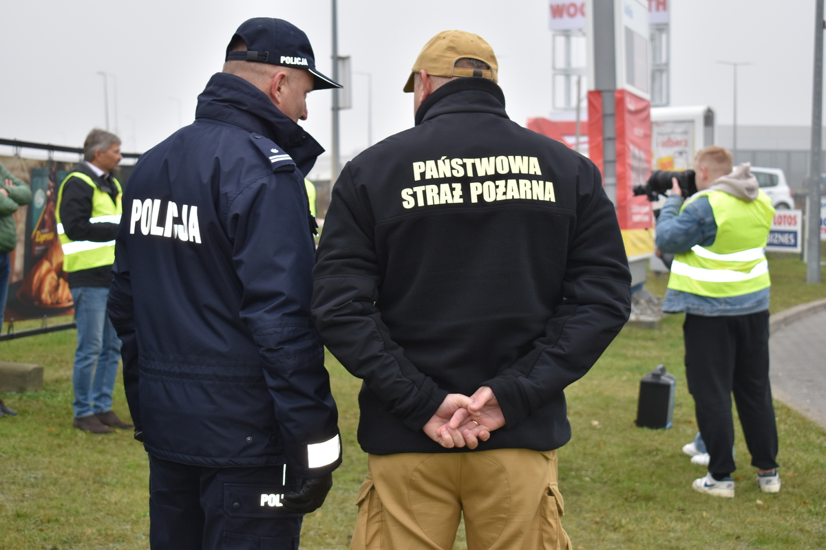 Agresywny mężczyzna spowodował pożar na stacji paliw – ćwiczenia policji i innych służb