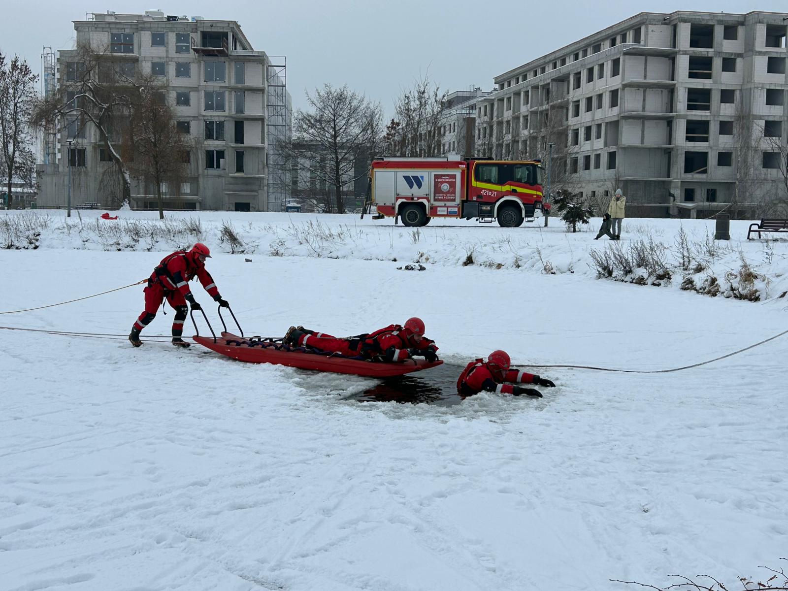 Strażacy ostrzegają przed lodem. Edukacyjne pokazy w ramach akcji „Bezpieczne ferie 2026"