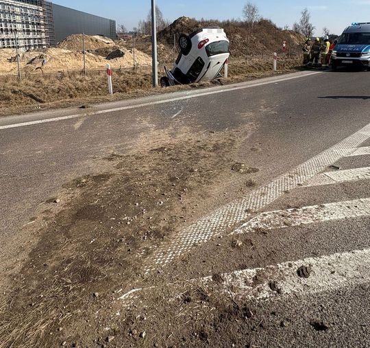 Pięciu młodych mężczyzn w dachującym aucie. Policja przypomina o ostrożności